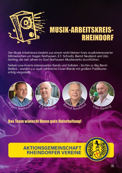 Der Frühling in Rheindorf soll mit einem musikalischen -Event starten. Der Konzert mit mehreren Events wurde mit Plakaten und einem breit gestreuten Booklet beworben. Im gleichen Design wurde auch eine Konzert CD gestaltet.